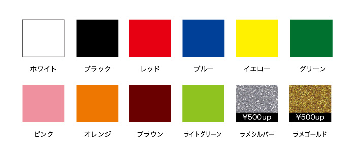 10色のうち1色を選べます。(ラメインクシルバー・ゴールドは¥500UPです。)